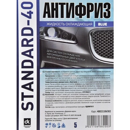 Антифриз Дорожная Карта Standard синій -24 °C, 4 л готовий антифриз (48021106382)
