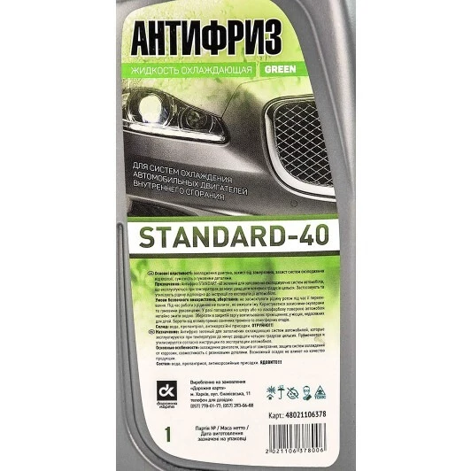Антифриз Дорожная Карта Standard зелений -24 °C, 0,85 л готовий антифриз (48021106378)