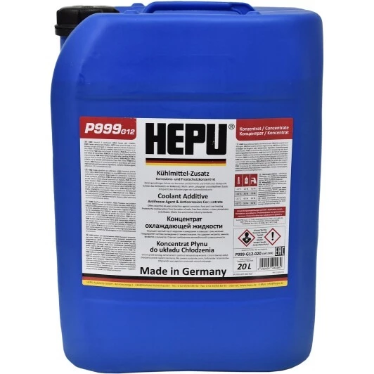 Концентрат червоний антифризу Hepu G12 призначений для використання в алюмінієвих і чавунних конструкціях двигунів. Склад, розведений водою в пропорціях 1: 1 запобігає замерзанню рідини до температури - 38°C. При правильному зберіганні хімікат стійкий до окислення і може зберігатися до 5 років.
