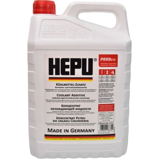 Концентрат червоний антифризу Hepu G12 призначений для використання в алюмінієвих і чавунних конструкціях двигунів. Склад, розведений водою в пропорціях 1: 1 запобігає замерзанню рідини до температури - 38°C. При правильному зберіганні хімікат стійкий до окислення і може зберігатися до 5 років.