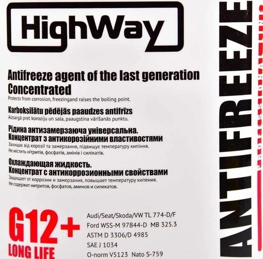 Антифриз HighWay Long Life G12+ червоний 3,78 л концентрат антифризу (G12LLRED378)