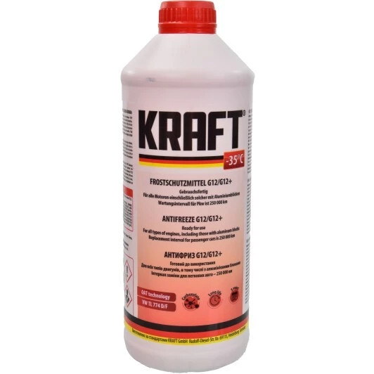 Антифриз KRAFT G12/G12+ червоний -35 °C, 1,5 л готовий антифриз (KF109)