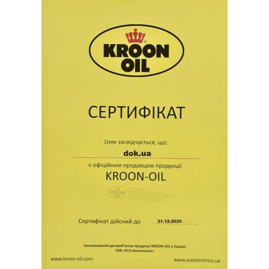 Kroon Oil – голландська компанія, заснована 1906 року, є незалежним виробником мастильних матеріалів, олив та автохімії преміум-класу. Виготовляючи продукти для найрізноманітніших напрямів – від автотранспортних засобів і до промислового й сільськогосподарського обладнання – компанія залишається одним із лідерів на світовому ринку. Перебуваючи на ньому понад 100 років, Kroon-Oil продовжує відстежувати зміни на ринку та всі тенденції, пов'язані з технікою, для якої призначені її товари.