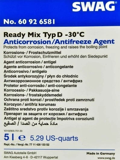Антифриз SWAG Ready Mix Typ D G11 зелений -30 °C, 5 л готовий антифриз (60926581)