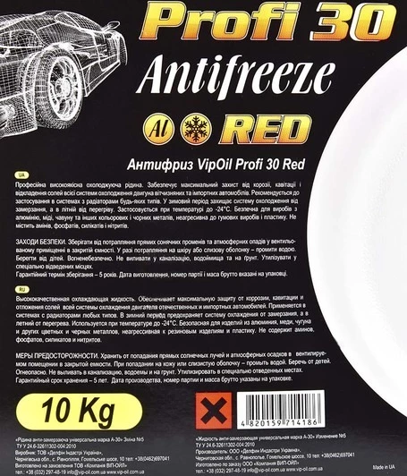 Антифриз VIPOIL Profi 30 червоний -24 °C, 10 л готовий антифриз (701391)