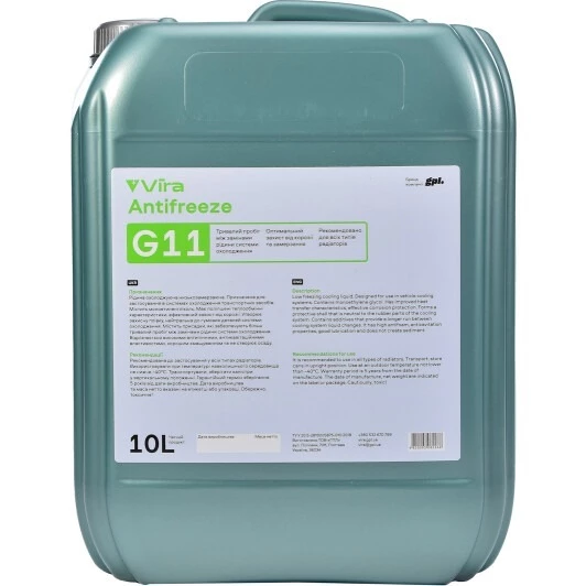 Антифриз VIRA G11 зелений -40 °C, 10 л готовий антифриз (VI0032)