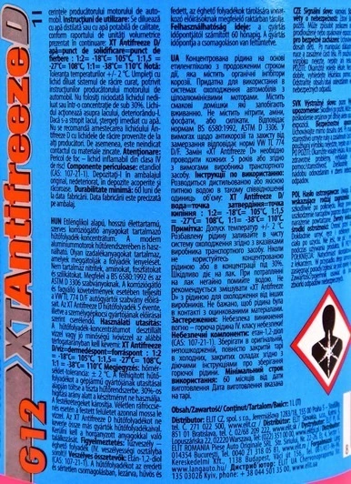 Завдяки відсутності нітритів, фосфатів і амінів, продукт не впливає на гумові ущільнювачі і прокладки. Відповідає стандарту G12 і рекомендована до використання в моторах легкових і вантажних автомобілів.