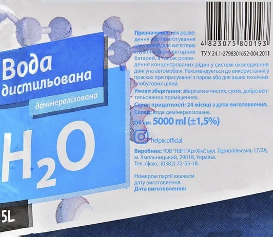 Дистильована вода Helpix активно застосовується в обслуговуванні автомобіля і в побутових цілях.