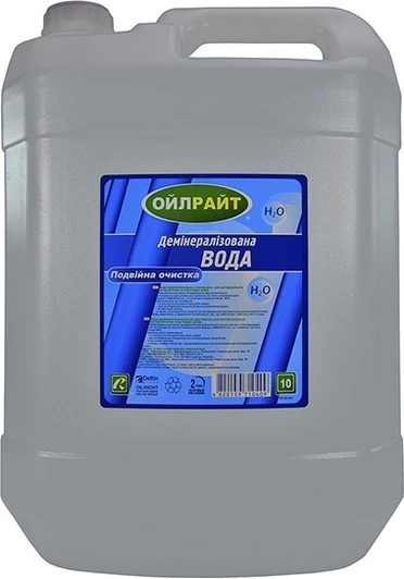 Дистильована вода Ойл Райт є демінералізованою воду, яка застосовується в місцях, де неприпустимо наявність мінеральних елементів, наприклад: акумулятори автомобілів, побутова техніка, промивка систем та інше. Застосування дистильованої води в рази продовжить термін служби акумулятора, рідинних систем і побутових приладів.