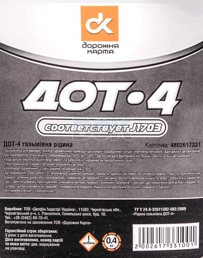 Гальмівна рідина від національної автомережі «Дорожная карта» прекрасно пристосована для застосування в українському кліматі і розрахована на роботу в температурному діапазоні від -50 до +50 C. Рідина володіє відмінними експлуатаційними властивостями, які зберігаються протягом тривалого періоду.