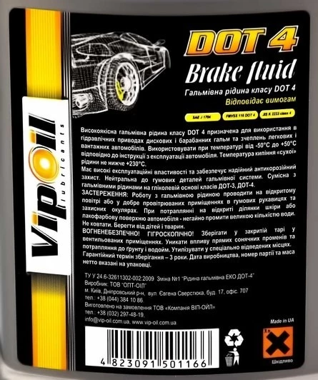 Гальмівна рідина Гальмівна рідина VIPOIL DOT 4 пластик (0252533)
