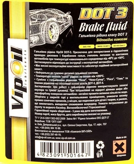 Гальмівна рідина VIPOIL DOT 3, 0,37 л гальмівна рідина (0278713)
