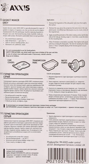 Для поліпшення герметичності і зносостійкості деяких автомобільних деталей користувачі вдаються до допомоги формирователей прокладок. Однією із затребуваних марок є Axxis Lubricants, що випускає водостійкий гель Axxis Silicone High-Temp.