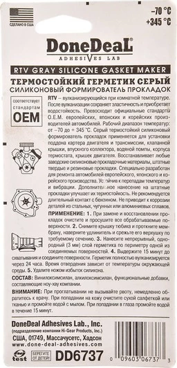 Герметик DoneDeal Gasket Maker сірий формувач прокладок, 42,5 мл DD6737 (DD6737)
