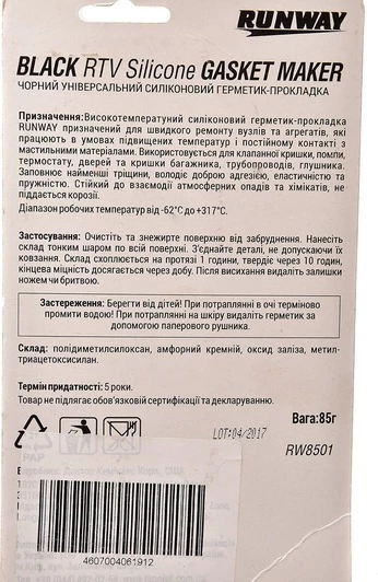 Герметики Runway стійкі до вібрації, температурних впливів і корозії. Виготовляються з американського сировини з урахуванням міжнародних стандартів якості.