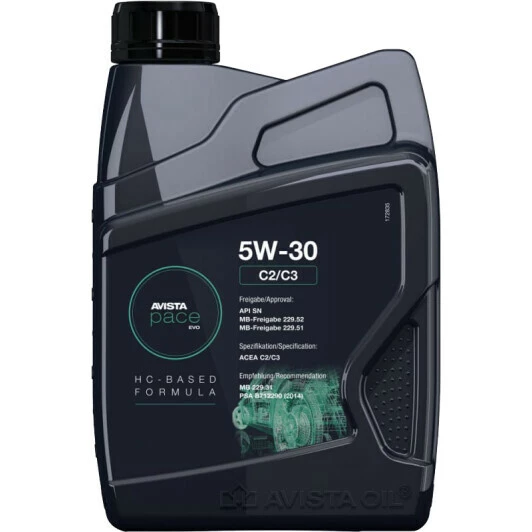 Моторна олива AVISTA Pace EVO C2/C3 5W-30 – це мінеральний продукт високого рівня очищення, до складу якого входять сучасні високоякісні присадки.