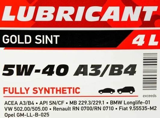 • ACEA класифікація: A3 / B4 (збільшений інтервал сервісної заміни).
