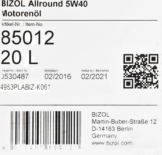 Bizol Allround 5W-40 належить до синтетичних автоолив. Протестована в турбокомпрессорах і чудово поєднується з каталітичними нейтралізаторами.
