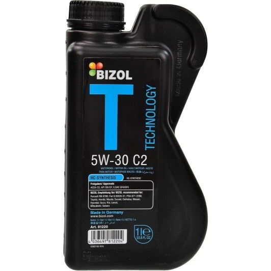 Моторне масло Bizol Technology C2 5W-30 Синтетичне стало спеціальної розробкою насамперед для корейських і японських легкових автомобілів з бензиновими двигунами, а також для інших марок з відповідними допусками.