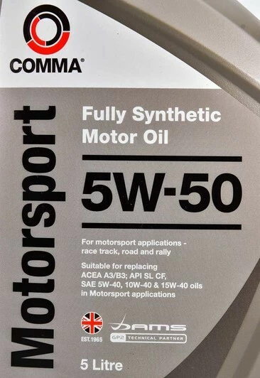 Comma Motorsport 5W-50 - високоякісна, повністю синтетична моторна олива, розроблена спеціально для спортивних автомобілів, які беруть участь у ралі, спортивних перегонах.