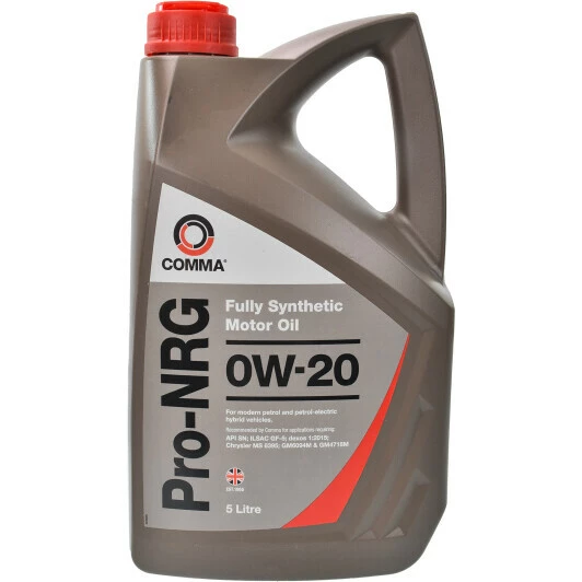Comma Pro-NRG 0W-20 - малов'язка олива цілорічного застосування, для бензинових і гібридних моторів.