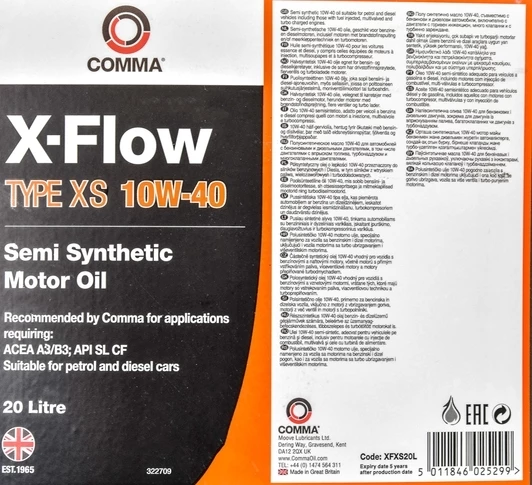 Опис товару: Comma X-Flow Type XS 10W-40 (20 л) моторна олива