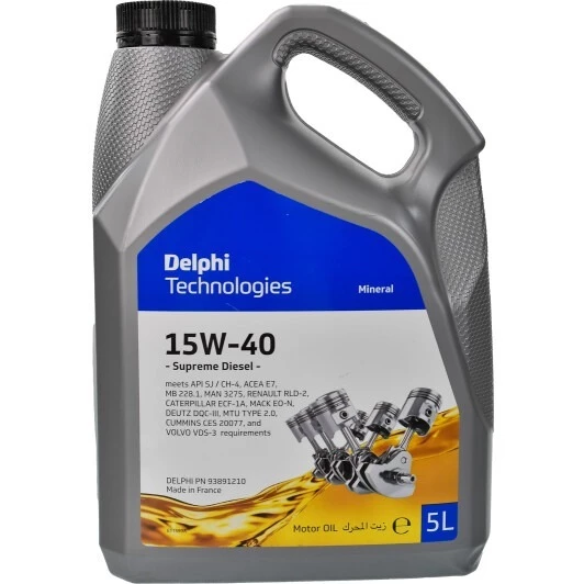 Моторна олива Delphi Supreme Diesel 15W-40 мінеральна належить до всесезонних олив. Розроблена шляхом перероблення нафти та її подальшого очищення з додаванням пакета присадок.
