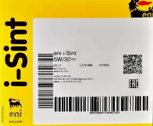 Eni I - Sint 5W-30 - синтетична моторна олива, розроблена для бензинових і дизельних двигунів, оснащених каталізаторами або сажовими фільтрами.
