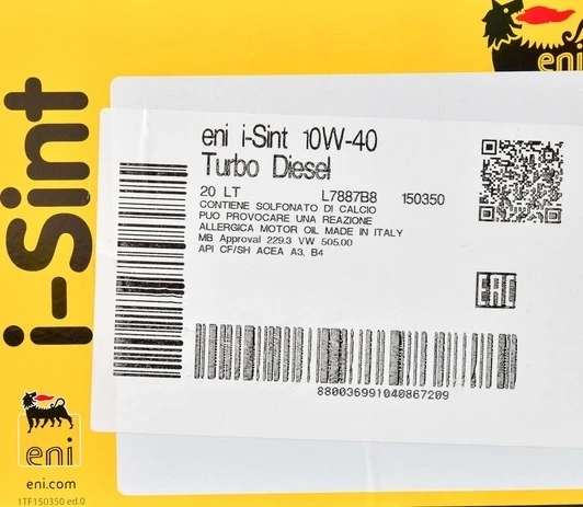 Eni I - Sint TD 10W-40 - напівсинтетична моторна олива що застосовується для всіх типів дизельних двигунів, зокрема двигуна із турбонаддувом, а також для бензинових ДВЗ.