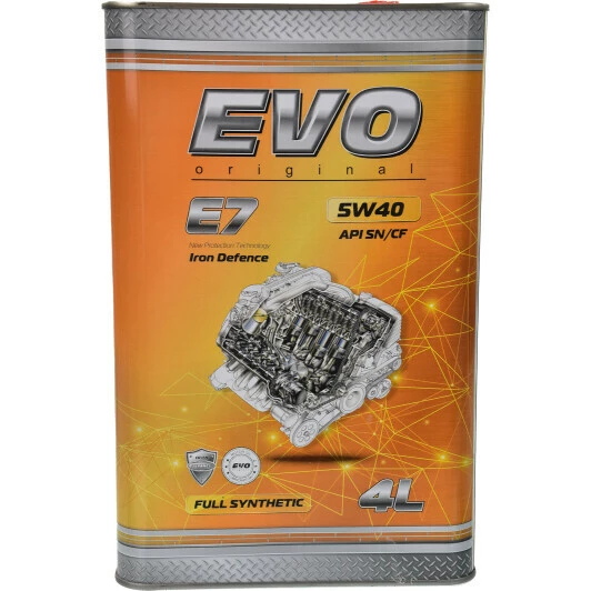 Олива моторна Ево Е7 5W-40 синтетична універсальна підходить для легкових автомобілів і легких вантажівок для застосування в ДВЗ бензин / дизель.