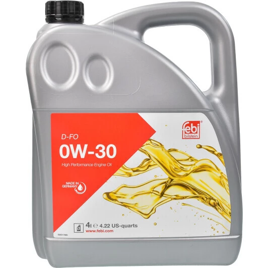 Синтетична моторна олива Febi D-FO 0w-30 призначена для дизельних двигунів. Належить вона до Low Saps олив, тобто розрахована на використання в автомобілях, обладнаних сажовим фільтром (DPF) і триступеневим каталізатором (TWC). Вона подовжує термін служби фільтра та каталізатора внаслідок того, що практично не містить сульфатної золи, сірки та фосфору (при горінні вони утворюють доволі великі частинки, які засмічують пори DPF-фільтрів).