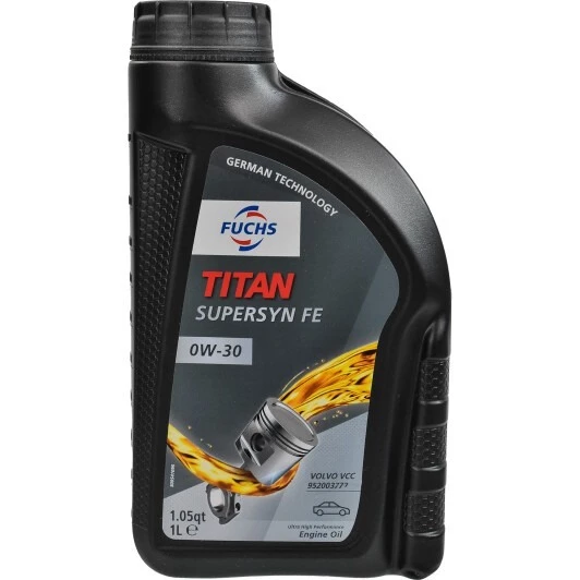 Моторна олива Fuchs Titan Supersyn FE 0W-30 синтетична застосовується як в автомобілях з бензиновими, так і з дизельними моторами. Якісні базові оливи й присадки служать основою для виготовлення зазначеної оливи та забезпечують високу якість підсумкового продукту.