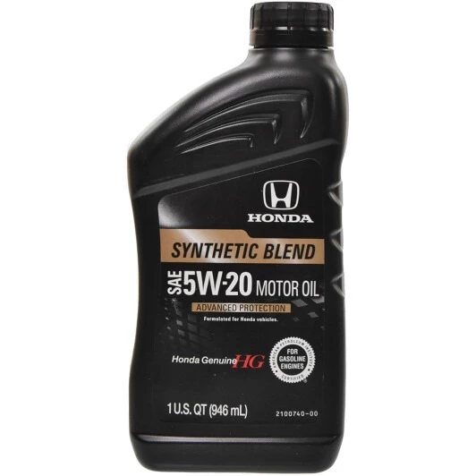 Олива Honda/Acura Genuine Synthetic Blend із в'язкістю 5W-20 розроблена для двигунів Acura і Honda, які працюють на бензині.
