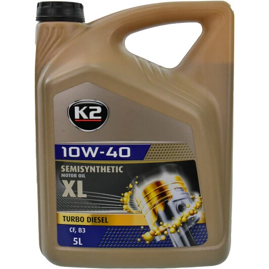K2 XL Turbo Diesel 10w-40 – це напівсинтетична моторна олива, призначена для дизельних двигунів (зокрема з турбокомпресором) легкових та вантажних автомобілів. Підходить як для нових моторів, так і для моторів з великим пробігом, які потребують додаткового захисту від зносу.