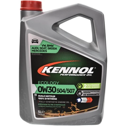 Повністю синтетична моторна олива Kennol Ecology 504/507 0w-30 – це високоефективний продукт, рекомендований для сучасних бензинових та дизельних моторів європейських виробників: Mercedes Benz, VAG (Volkswagen, Audi, Seat, Skoda), BMW. Підходить для двигунів, оснащених фільтром сажі (DPF) або каталітичним нейтралізатором, яким потрібен мастильний матеріал, відповідний вимогам стандарту ACEA C3.