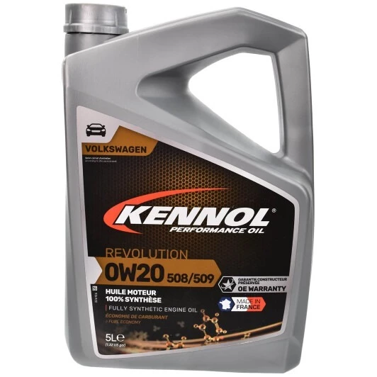 Моторна олива Кеннол Революшн 508/509 0w-20 виготовлена на основі повністю синтетичних базових олив високої якості з додаванням ретельно збалансованого пакета присадок. Завдяки оптимізованій формулі мастильний матеріал вирізняється: