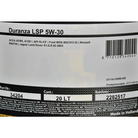 Duranza LSP 5W-30 - вид моторної оливи з низьким показником SAPS, на основі синтетичних складових, для двигунів із каталізаторами і сажовими фільтрами.