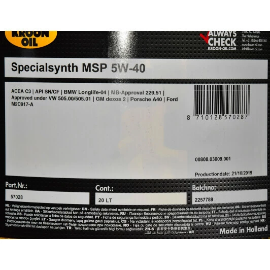 SPECIALSYNTH MSP 5W-40 - машинна олива преміум класу із середнім рівнем SAPS, виготовлена на основі синтетичних компонентів.