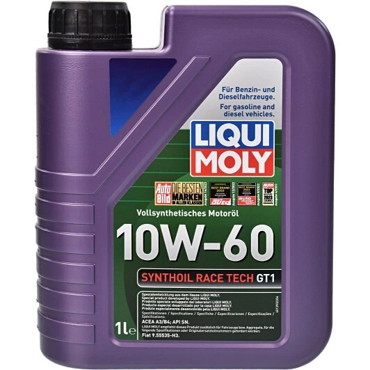 Liqui Moly Synthoil Race Tech GT1 10W-60 - на 100% синтетична олива , зроблена на ПАТ-основі. Активно застосовується в екстремальних умовах автоспорту.