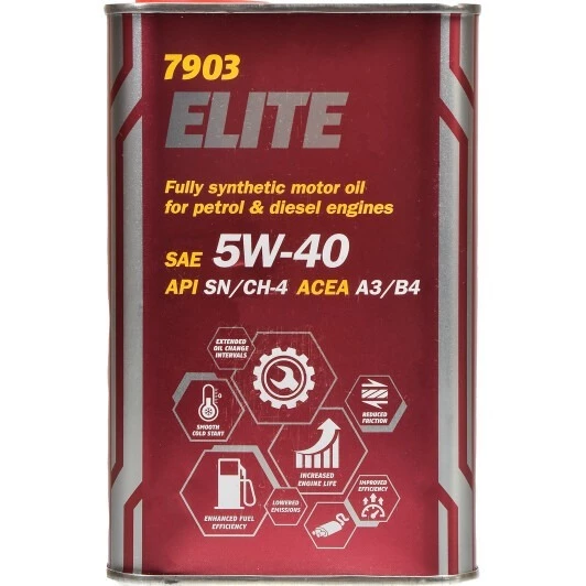 Моторна олива Mannol Elite (Metal) 5W-40 синтетична розроблена для бензинових та дизельних двигунів. Може застосовуватися як у нових, сучасних автомобілях, так і в «класиці» з великим пробігом.