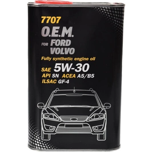 Mannol O.E.M. For Ford Volvo (Metal) 5w-30 – це повністю синтетична моторна олива, розроблена спеціально для сучасних дизельних та низки бензинових двигунів легкових автомобілів Ford, Volvo та General Motors. Рекомендована для моторів, яким необхідний стандарт якості Ford WSS-M2C913-D, але також може застосовуватися у двигунах, що потребують більш ранніх специфікацій, зокрема 913-C, 913-B та 913-A.