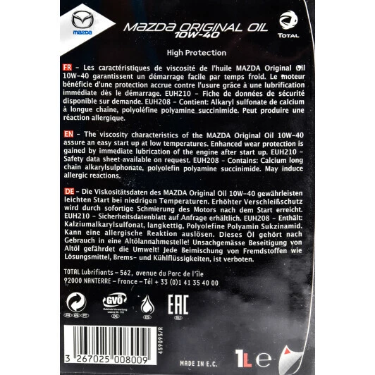 Опис товару: Mazda Original Oil 10W-40 (1 л) моторна олива