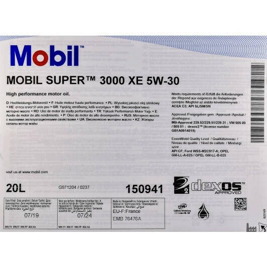Олива Мобіл Супер 3000 XE 5W-30 синтетична - це прекрасна малозольна змащувальна рідина для бензинового або дизельного двигуна вашого транспортного засобу.