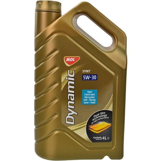 MOL Dynamic Synt 5w-30 моторна олива – синтетичний продукт преміумкласу, розрахований на застосування в найсучасніших автомобілях. Ця олива призначена для застосування в бензинових та дизельних двигунах (без наддуву, з турбонаддувом, з прямим упорскуванням) легкових автомобілів, а також легковантажних фургонів (до 3,5 т), мікроавтобусів тощо.