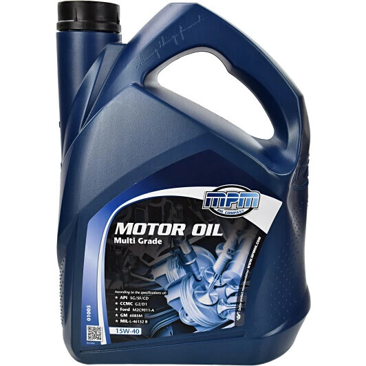 Моторна олива MPM Multi Grade 15W-40 мінеральна виготовляється на основі сирої нафти, яка переробляється та очищується, а з додаванням присадок олива виходить більш збалансованою. Такий продукт можна використовувати для дизельних автомобілів з турбонаддувом і без, а також для бензинового вантажного транспорту.