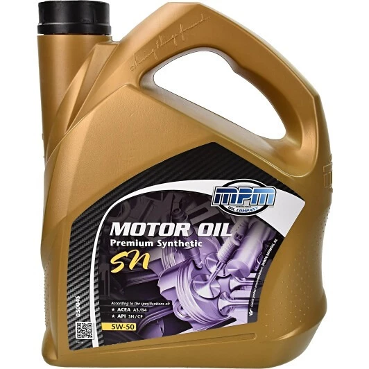Моторна олива MPM Premium Synthetic SN 5W-50 синтетична спеціально розроблена для високопродуктивних бензинових і дизельних двигунів з турбокомпресором і без. Продукт придатний для експлуатації у двигунах, обладнаних сучасними системами очищення відпрацьованих газів.