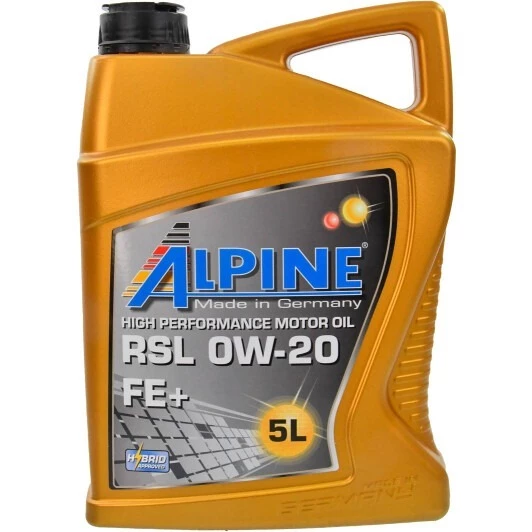 Моторна олива Alpine RSL FE+ 0W-20 – повністю синтетичний мастильний матеріал, розроблений для надійного захисту сучасних бензинових і дизельних двигунів легкових автомобілів. Продукт рекомендовано до використання в двигунах, де виробник регламентує застосування малов'язких олив класу SAE 0W-20 для досягнення ефекту Fuel Economy (FE).
