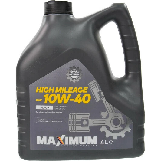 Олива Maximum High Mileage 10W-40 – напівсинтетичний змащувальний матеріал, спеціально призначений для бензинових і дизельних двигунів із великим пробігом. Його формула сприяє усуненню проблем, пов'язаних зі зношенням і віком двигуна. Продукт придатний для моторів автомобілів, в яких встановлені каталітичні нейтралізатори, проте не призначений для моделей із сажовими фільтрами.