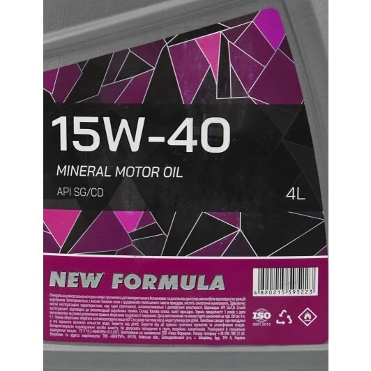 New Formula 15W-40 – мінеральна моторна олива, призначена для всесезонного обслуговування бензинових і дизельних двигунів попередніх поколінь. Може використовуватись у легкових і вантажних автомобілях, а також у сільськогосподарській і будівельній техніці.
