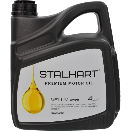 STALHART VELUM 0W-20 – це повністю синтетична моторна олива з енергоощадними властивостями, розроблена спеціально для бензинових двигунів сучасних легкових автомобілів. Сумісна з моторами, яким потрібна специфікація GM dexos1 Gen 2.